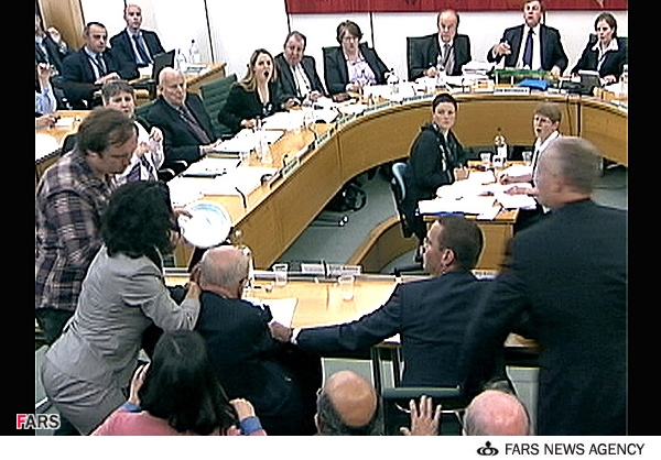 رابرت مردوخ که رسوایی شنود غیر قانونی وی طی روزهای اخیر جنجال زیادی بر پا کرده است، در جلسه پاسخ به سوالات نمایندگان پارلمان انگلیس، مورد هجوم فردی قرار گرفت. خبرنگار خبرگزاری فرانسه اعلام کرد که "رابرت مردوخ " هنگامی که در کمیته پارلمان انگلیس برای پاسخگویی به سوالات نمایندگان حاضر شد، مورد هجوم فردی قرار گرفت. این فرد به سوی مردوخ یک بشقاب پر از آنچه کف اصلاح خوانده شد پرتاب کرد و بلافاصله از سوی پلیس حاضر در محل دستگیر شد. به دلیل این حادث