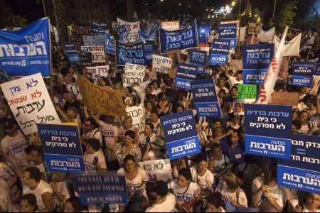 تظاهرات ضد دولتی در تل آویو در 6 اگست 2011در ادامه اعتراضات خیابانی برای سومین هفته متوالی، صدها هزار اسرائیلی در اعتراض به سیاستها و عملکرد کابینه نتانیاهو تظاهرات کردهاند. به گزارش وبسایت هاآرتص، بیش از 300 هزار اسرائیلی در سرتاسر فلسطین اشغالی از شهر کریات شمونا در شمال گرفته تا صحرای نقب در جنوب، در اعتراض به هزینه بالای زندگی مخصوصا افزایش قیمت مسکن تظاهرات کردند و خواستار برقراری عدالت اجتماعی شدند. معترضان ضمن حمل پلاکاردهایی که روی آ