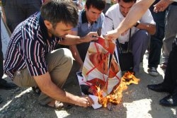 در اعتراض به جنایات آل خلیفه / عکسهای شاه بحرین در آنکارا به آتش کشیده شد